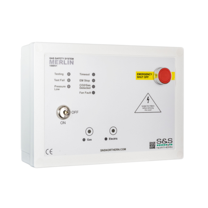 Another main feature of the Merlin 1000V+ is the facility to interlock between the ventilation system and the gas solenoid valve. The system is compatible with both current monitors and air pressure differential switches in order to interlock with up to 2 fans.