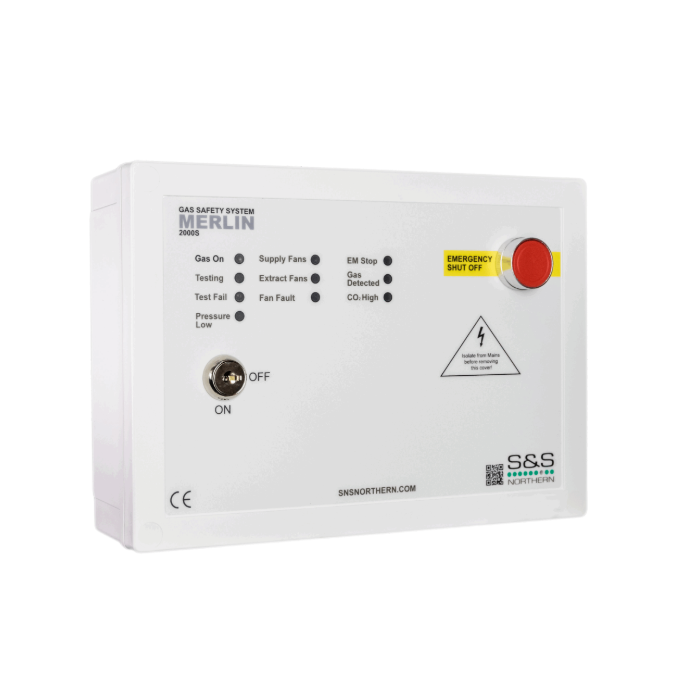 The Merlin 2000S ventilation interlock system is specifically designed for use in commercial kitchens to meet BS6173. This panel is designed for use when the kitchen appliances do not have flame failure devices fitted, therefore gas proving is a requirement.